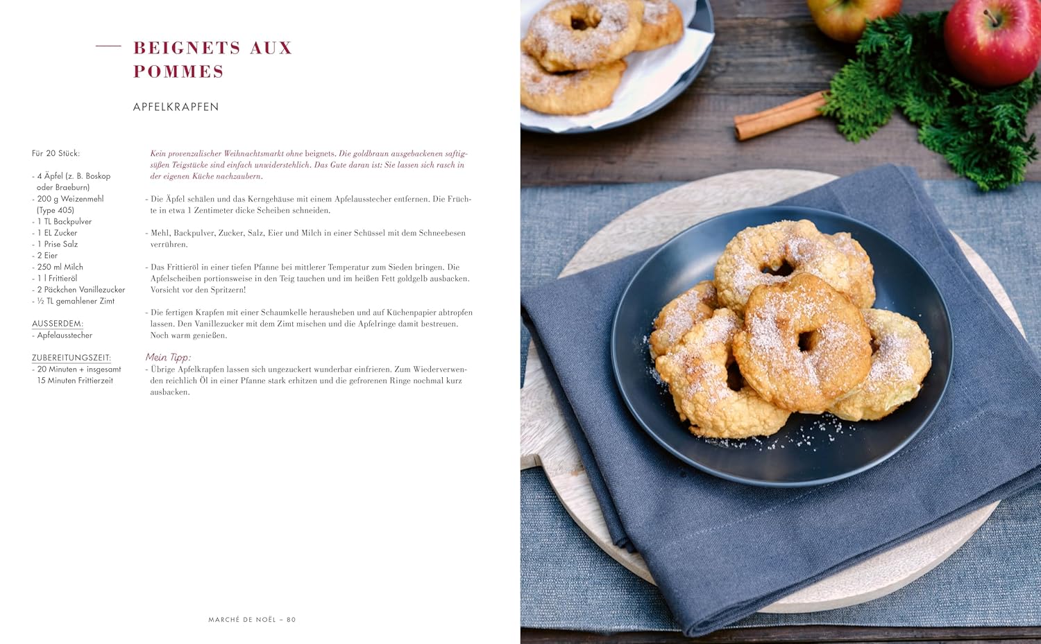 In sieben Kapiteln stellt sie ihre beliebtesten Herbst- und Winterrezepte sowie Weihnachtstraditionen der Region vor, untermalt von stimmungsvollen Bildern und Anekdoten. Mit Beschreibungen von Spezialitäten, Informationen zu regionalen Produkten und 65 einfach nachzukochenden Rezepten bietet das Buch alles für eine gelungene Winterzeit. Vom klassischen Kartoffelgratin und gratinierter Zwiebelsuppe über Hähnchenbrust in Morchel-Sahnesauce und Mangoldkuchen bis zum berühmten Baba au rhum und Bûche de noël (Biskuitrolle mit Schokolade) kommen Fans der mediterranen Küche sowie Provence-Liebhaberinnen und -Liebhaber voll auf ihre Kosten.
