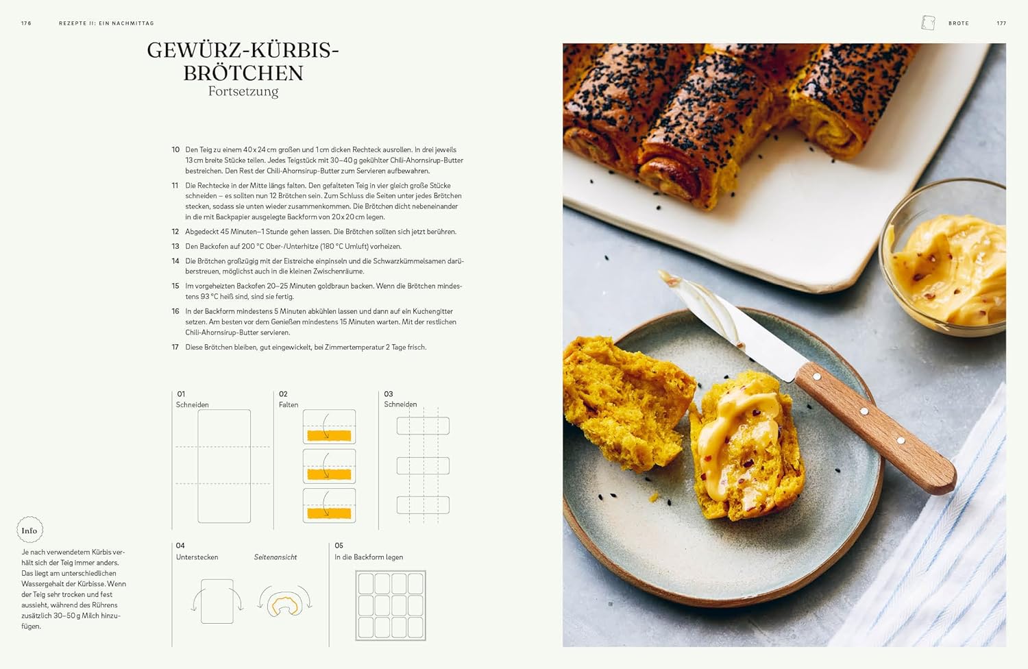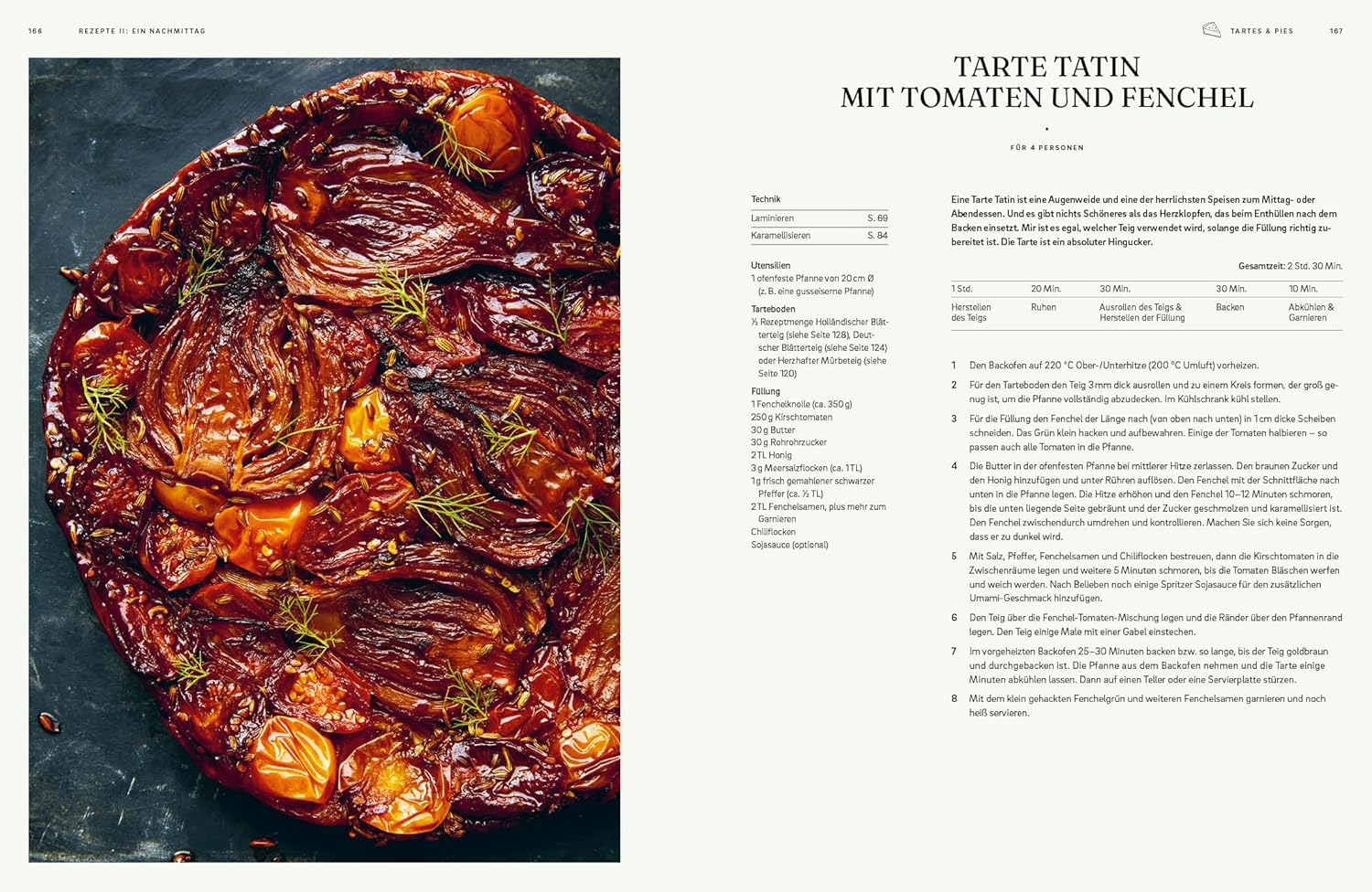 - Backen an einem Tag: Anspruchsvollere Rezepte wie Mango-Shortcake mit kandierter Limette, raffinierte Rhabarber-Tarte und Olivenöl-Brioche mit gebratenen Trauben, Honig und Thymian