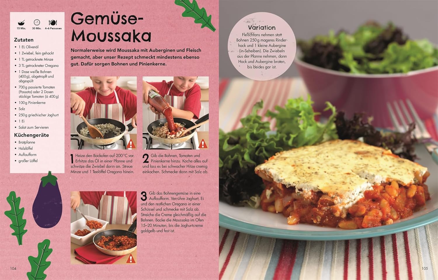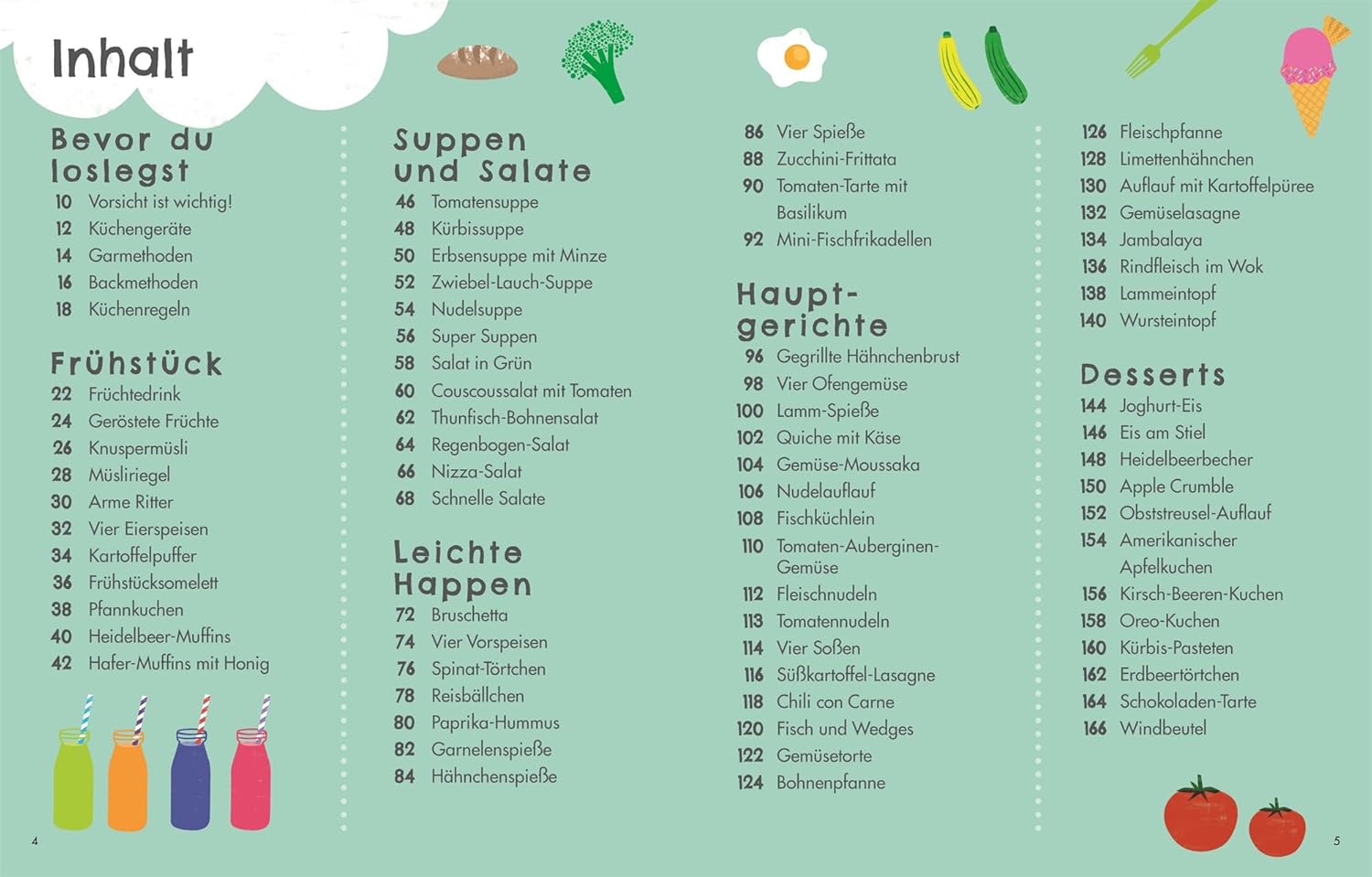 Bereit den Kochlöffel zu schwingen? Mit diesem Kochbuch werden Kids ab 7 Jahre ganz schnell echte Kochprofis. Egal ob Tomatensuppe, Süßkartoffel-Pommes, Omelette oder Bananenkuchen – über 150 abwechslungsreiche Rezepte warten nur darauf, ausprobiert zu werden. Mit praktischen Schritt-für-Schritt-Anleitungen sowie altersgerecht erklärten Grundlagen können junge Hobbyköch*innen direkt erste Kocherfolge feiern.