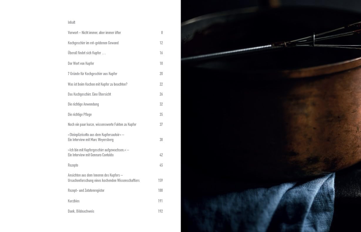 - Großer Informationsteil: über das Material, die Herstellung von Kupfergeschirr, die richtige Hitzequelle; inklusive Pflegehinweise