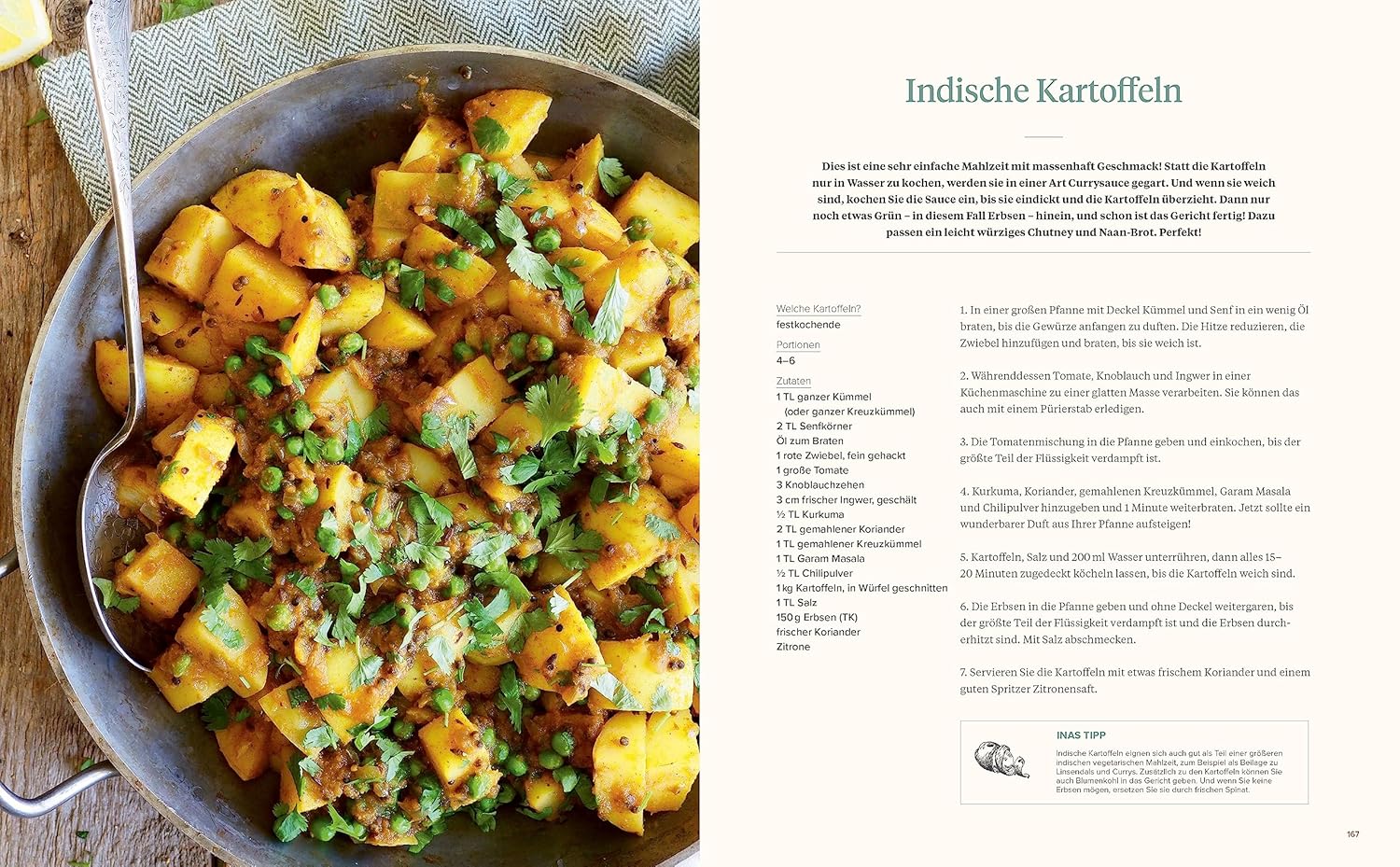 - Hauptgericht Kartoffel: Egal, ob man lieber mit Kartoffeln gesund kochen möchte oder auf die »Soul Food«-Komponente setzt: Ina-Janine Johnsen bietet vom Gemüseeintopf mit Kartoffeln bis zur Lasagnen-Neuinterpretation für jeden Geschmack etwas.