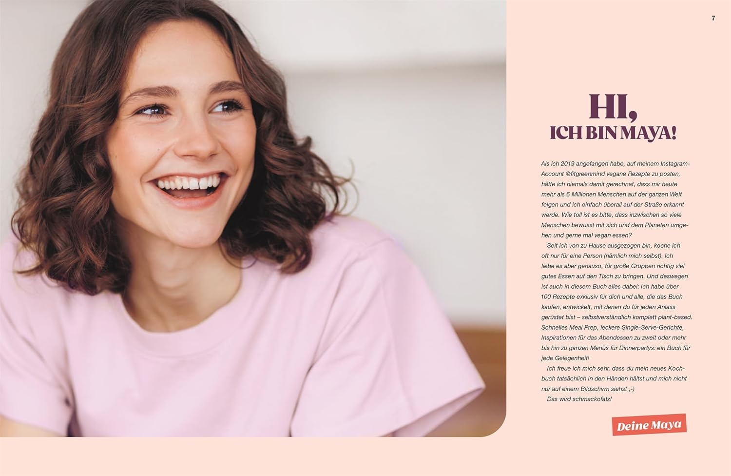 Seit 2019 begeistert Maya Leinenbach als @fitgreenmind ihre stetig wachsende Fangemeinde. Heute ist sie mit über 6 Millionen Follower*innen (davon 1,2 Mio. in Deutschland) auf Insta, TikTok, YouTube und Pinterest die größte vegane Influencerin Deutschlands. Mit ihren Posts beweist sie, dass plantbased Essen ganz einfach ist und jede Menge Spaß macht.