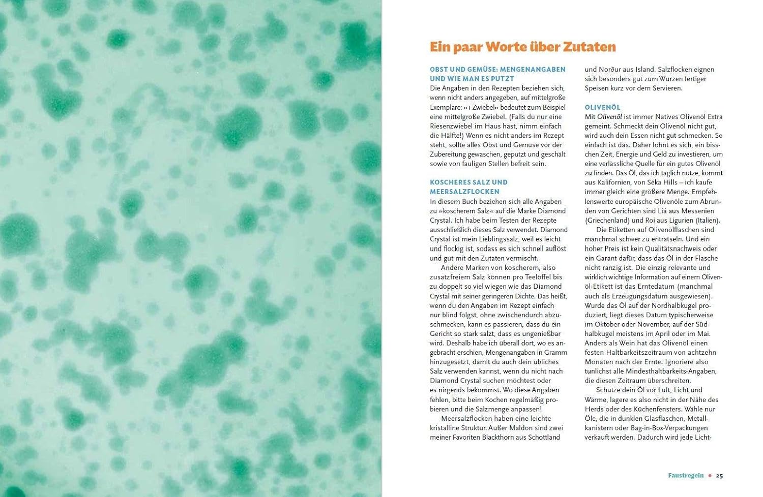 Zudem enthält Etwas Gutes wertvolle Tipps – welche Zutaten man wirklich immer zu Hause haben muss (Zitrusfrüchte! Parmesan! Miso!), wie man Olivenöl einkauft (auf das Erntedatum achten!), wofür man tiefer in die Tasche greifen sollte (nur beste Zutaten fürs Salatdressing!) – und Tricks, die jedes Essen um Klassen besser aussehen lassen.